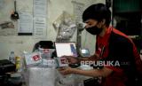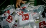 Pekerja mengemas obat Covid-19 di salah satu gerai ekspedisi Sicepat di Jalan K.S Tubun, Petamburan, Jakarta, Sabtu (17/7). Pemerintah Pusat resmi mendistribusikan obat Covid-19 secara gratis sebanyak 300.000 paket berupa multivitamin, Azithtromycin, dan Oseltamivir bagi pasien COVID-19 yang menjalani isolasi mandiri di Pulau Jawa dan Bali yang dikirim melalui jasa layanan ekspedisi. Reublika/Thoudy Badai (FOTO : Republika/Thoudy Badai)
