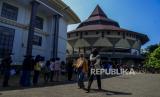 Warga berjalan usai disuntik vaksin Covid-19 di Kampung Budaya Betawi Setu Babakan, Jagakarsa, Jakarta, Ahad (18/7). Kegiatan serbuan vaksinasi dengan kuota 1.000 orang itu untuk mempercepat program vaksin bagi rakyat Indonesia agar tercipta kekebalan komunal. (FOTO : Republika/Putra M. Akbar)