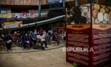 Sejumlah warga mengantre untuk disuntik vaksin Covid-19 di Kampung Budaya Betawi Setu Babakan, Jagakarsa, Jakarta, Ahad (18/7). Kegiatan serbuan vaksinasi dengan kuota 1.000 orang itu untuk mempercepat program vaksin bagi rakyat Indonesia agar tercipta kekebalan komunal. (FOTO : Republika/Putra M. Akbar)