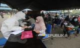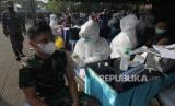 REPUBLIKA.CO.ID, SURABAYA -- Gubernur Jawa Timur Khofifah Indar Parawansa bersama Panglima Koarmada II Laksamana Muda TNI Iwan Isnurwantomeninjau pelaksanaan Serbuan Vaksinasi COVID-19 di halaman Jalajaya, Surabaya, Jawa Timur, Ahad (18/7/2021).