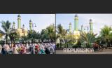 REPUBLIKA.CO.ID, BEKASI -- Foto kolase Shalat Idul Adha 1441 H (kiri) dan Idul Adha 1442 H (kanan) pada PPKM Darurat di Masjid Agung Al-Barkah, Bekasi, Jawa Barat, Selasa (20/7).