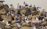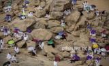 ibuan jamaah haji melaksanakan ibadah wukuf di Arafat, Arab Saudi, Senin, (19/7). Jamaah haji tahun kembali digelar terbatas pada masa Pandemi Covid-19. (FOTO : EPA-EFE/SAUDI HAJJ AND UMRAH MINISTRY )