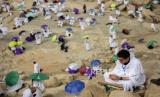 ibuan jamaah haji melaksanakan ibadah wukuf di Arafat, Arab Saudi, Senin, (19/7). Jamaah haji tahun kembali digelar terbatas pada masa Pandemi Covid-19. (FOTO : AP Photo/Amr Nabil)