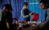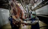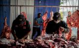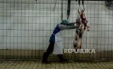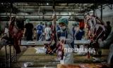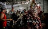 REPUBLIKA.CO.ID, JAKARTA -- Petugas memotong daging kurban di Rumah Potong Hewan (RPH) PD Dharma Jaya di kawasan Cakung, Jakarta Timur, Rabu (21/7). Pemprov DKI Jakarta mengimbau masyarakat untuk mengikuti kebijakan Kementerian Agama mengenai penyembelihan hewan kurban dilakukan di Rumah Pemotongan Hewan.