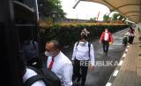 REPUBLIKA.CO.ID, JAKARTA -- Sejumlah pegawai KPK tidak lolos Tes Wawasan Kebangsaan (TWK) menaiki bus yang akan membawa mereka ke lokasi pendidikan dan pelatihan bela negara dan wawasan kebangsaan bersama Kementerian Pertahanan (Kemenhan) di gedung KPK, Jakarta, Rabu (21/7/2021). Diklat tersebut harus mereka lakukan sebagai syarat diangkat menjadi Aparatur Sipil Negara (ASN).