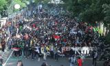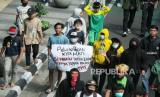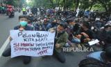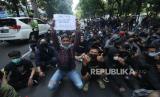REPUBLIKA.CO.ID,BANDUNG -- Aksi menolak Pemberlakuan Pembatasan Kegiatan Masyarakat (PPKM) oleh massa gabungan pelajar, mahasiswa, pedagang dan ojol di Kawasan Balai Kota, Jalan Wastukancana, Kota Bandung, Rabu (21/7).