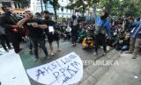Aksi menolak Pemberlakuan Pembatasan Kegiatan Masyarakat (PPKM) oleh massa gabungan pelajar, mahasiswa, pedagang dan ojol di Kawasan Balai Kota, Jalan Wastukancana, Kota Bandung, Rabu (21/7). Mereka berharap pemerintah segera menghentikan PPKM, karena kebijakan tersebut dianggap telah menyengsarakan rakyat. (FOTO : Edi Yusuf/Republika)