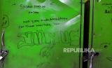Sejumlah coretan di pintu loker santri Pondok Pesantren Nuu Waar. (FOTO : ANTARA/Indrianto Eko Suwarso)