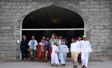 Sejumlah santri bercengkrama di Masjid Pondok Pesantren Nuu Waar. (FOTO : ANTARA/Indrianto Eko Suwarso)