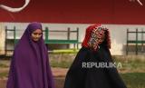 Dua santriwati berjalan menuju masjid di Pondok Pesantren Nuu Waar. (FOTO : ANTARA/Indrianto Eko Suwarso)