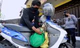 Warga pelanggar protokol kesehatan (prokes) membawa bantuan bahan pokok yang diberikan petugas saat terjaring sidak Pemberlakuan Pembatasan Kegiatan Masyarakat (PPKM) di Denpasar, Bali, Kamis (22/7/2021). Sidak terus dilakukan selama perpanjangan PPKM guna mencegah penyebaran pandemi COVID-19 dengan disertai pembagian bantuan bahan pokok bagi sejumlah pelanggar sebagai upaya pendisiplinan dan sosialisasi secara humanis serta untuk membantu perekonomian masyarakat. ANTARA FOTO/Fikri Yusuf/rwa. (FOTO : ANTARA FOTO)