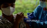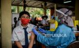 REPUBLIKA.CO.ID, JAKARTA -- Tenaga kesehatan menyuntikan vaksin Covid-19 kepada pelajar di SMAN 113 Jakarta di kawasan Lubang Buaya, Jakarta Timur, Kamis (22/7). Vaksinasi Covid-19 tersebut diperuntukan bagi kalangan pelajar dengan usia 12-17 tahun di wilayah Lubang Buaya, Jakarta Timur, dengan target vaksinasi sebanyak 1.000 orang guna menciptakan kekebalan kelompok sebagai antisipasi penyebaran Covid-19.