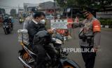 REPUBLIKA.CO.ID, JAKARTA -- Petugas gabungan melakukan operasi yustisi di kawasan Pasar Minggu, Jakarta, Kamis (22/7). Dalam operasi yustisi tersebut petugas mengimbau sekaligus memberikan masker kepada pengendara untuk menerapkan protokol kesehatan dengan menggunakan masker dua lapis guna mengantisipasi paparan virus Covid-19.