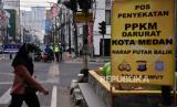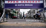 Warga melintas di Jalan Jendral Ahmad Yani, Kesawan, Medan, Sumatera Utara, Kamis (22/7/2021). Pemerintah Kota Medan resmi memperpanjang Pemberlakuan Pembatasan Kegiatan Masyarakat (PPKM) hingga 25 Juli 2021. (FOTO : ANTARA/Fransisco Carolio)