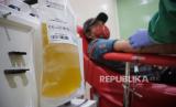 REPUBLIKA.CO.ID,TULUNGAGUNG -- Petugas melakukan tranfusi plasma darah konvalesen penyintas COVID-19 di UDD PMI Tulungagung, Tulungagung, Jawa Timur, Kamis (22/7/2021).