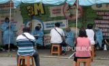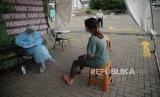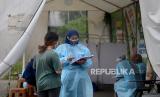 Petugas kesehatan mendata warga yang akan melakukan tes usap PCR Covid-19 di Lokasi Swab PCR Puskesmas Kecamatan Gambir, Jakarta, Jumat (23/7). Pemerintah terus menggeber pengetesan dan penelusuran atau testing dan tracing untuk menekan rasio kasus positif di Indonesia. Langkah tersebut dibutuhkan dalam penanganan pandemi Covid-19 saat ini, salah satu langkah yang akan dilakukan adalah dengan memprioritaskan pengetesan bagi suspek dan kontak erat. (FOTO : Prayogi/Republika.)