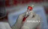 Petugas kesehatan membarikan tanda tabung sample lendir usai melakukan tes usap PCR Covid-19 kepada warga di Lokasi Swab PCR Puskesmas Kecamatan Gambir, Jakarta, Jumat (23/7). Pemerintah terus menggeber pengetesan dan penelusuran atau testing dan tracing untuk menekan rasio kasus positif di Indonesia. Langkah tersebut dibutuhkan dalam penanganan pandemi Covid-19 saat ini, salah satu langkah yang akan dilakukan adalah dengan memprioritaskan pengetesan bagi suspek dan kontak erat. (FOTO : Prayogi/Republika.)