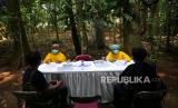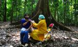 REPUBLIKA.CO.ID, YOGYAKARTA -- Tenaga kesehatan mengunggah data mahasiswa usai vaksinasi Covid-19 di Hutan Laboratorium Fakultas Kehutanan UGM, Yogyakarta, Jumat (23/7). Sebanyak 500 mahasiswa Fakultas Kehutanan UGM menjadi target vaksinasi massal.