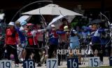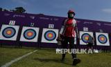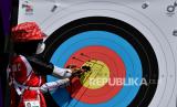 REPUBLIKA.CO.ID, TOKYO -- Pemanah Indonesia Diananda Choirunisa bersiap melepaskan anak panah dalam kualifikasi perorangan putri Olimpiade Tokyo 2020 di Yumenoshima Park Archery Field, Tokyo, Jepang, Jumat (23/7/2021). Diananda menempati posisi ke-40 dengan total poin 631.