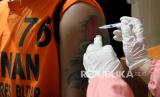 REPUBLIKA.CO.ID, BLITAR -- Petugas kesehatan melakukan vaksinasi Covid-19 terhadap tahanan di Mapolres Blitar, Jawa Timur, Jumat (23/7/2021). Polres Blitar melaksanakan vaksinasi terhadap 84 orang yang masih berstatus sebagai tahanan guna mendukung percepatan program vaksinasi massal dalam rangka pengendalian pandemi Covid-19 di Indonesia.
