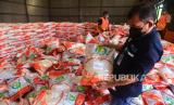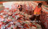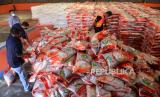 REPUBLIKA.CO.ID, BANDA ACEH -- Petugas mempersiapkan beras bantuan PPKM hasil panen petani tahun 2021 saat proses penyaluran di Gudang Perum Bulog Aceh, Desa Siron, Kabupaten Aceh Besar, Aceh, Jumat (23/7/2021).