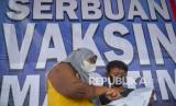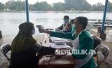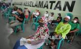 REPUBLIKA.CO.ID, KEP SERIBU -- Warga Pulau Pramuka dan Pulau Panggang mengikuti vaksinasi massal covid-19 di KRI Teluk Youtefa-522 yang lego jangkar saat Operasi Serbuan Vaksinasi Masyarakat Maritim di Perairan Kepulauan Seribu, Jakarta, Jumat (23/7). Sebanyak 1.200 vaksin COVID-19 disiapkan TNI AL untuk warga Kepulauan Seribu sebagai salah satu upaya penanganan COVID-19.