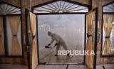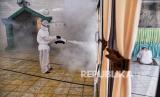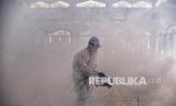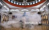 REPUBLIKA.CO.ID,MEDAN -- Petugas melakukan penyemprotan disinfektan di Masjid Taqwa Muhammadiyah, Medan Denai, Medan, Sumatera Utara, Jumat (23/7/2021).