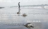 REPUBLIKA.CO.ID, CILACAP -- Tukik Penyu Lekang (Lepidochelys olivacea) dari konservasi penyu Nagaraja dilepasliarkan di Pantai Sodong, Desa Karangbenda, Adipala, Cilacap, Jateng, Jumat (23/7/2021).