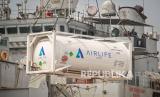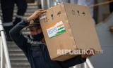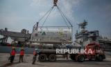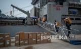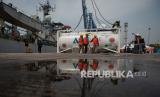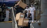 REPUBLIKA.CO.ID, Personel menurunkan kardus-kardus berisi konsentrator oksigen dari Kapal Angkatan Laut India (INS) Airawat di Pelabuhan Tanjung Priok, Jakarta, Sabtu (24/7). Pemerintah India memberikan bantuan 300 konsentrator oksigen dan 100 metrik ton oksigen medis cair untuk Indonesia dalam menghadapi pandemi virus COVID-19.