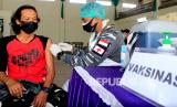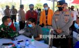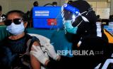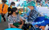 REPUBLIKA.CO.ID, KUPANG -- Personel kesehatan dari Lantamal VII Kupang menyuntikkan vaksin COVID-19 ke warga saat pelaksanaan vaksinasi COVID-19 dosis kedua yang digelar oleh Polda NTT di Mapolda NTT, Kupang, NTT, Sabtu (24/7/2021). Kapolda NTT Irjen Pol Lotharia Latif menyatakan sampai dengan Sabtu (24/7) capaian vaksinasi yang digelar oleh Polda NTT dalam serbuan vaksinasi sudah mencapai 460 ribu orang.