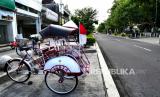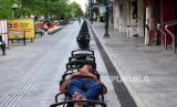 REPUBLIKA.CO.ID, YOGYAKARTA -- Suasana kawasan wisata Malioboro, Yogyakarta, Ahad (25/7), terpantau lengang. Pengunjung di kawasan Malioboro masih sangat sedikit, meski penyekatan masuk sudah dilonggarkan. Sejumlah toko terlihat masih tutup. Hanya terlihat beberapa penarik becak dan warga yang lalu lalang di sekitar Malioboro.