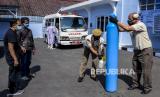 Petugas rumah sakit memasukkan tabung oksigen ke dalam ambulans di Pabrik Zat Asam (Pazam) 731 di Kompleks Lanud Husein Sastranegara, Kota Bandung, Senin (26/7). TNI AU mengoperasikan Pabrik Zat Asam (Pazam) 731 di bawah Komando Pemeliharaan Materiil (Koharmat) Angkatan Udara. Pazam 731 tersebut mampu melakukan pengisian 60 hingga 70 tabung oksigen per hari untuk membantu memenuhi kebutuhan tabung oksigen di rumah sakit dalam penanganan Covid-19 di wilayah Bandung Raya. Foto: Republika/Abdan Syakura (FOTO : REPUBLIKA/ABDAN SYAKURA)