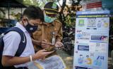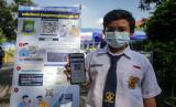Seorang siswa menunjukkan situs pendaftaran vaksinasi COVID-19 di SMPN 29 Kota Tangerang, Banten, Senin (26/7/2021). Pemerintah Kota Tangerang meluncurkan fitur baru di situs pendaftaran vaksinasi COVID-19 sebagai upaya mempercepat proses administrasi agar peserta vaksin tidak perlu mengantre untuk mendapatkan surat vaksinasi dan bisa meningkatkan target vaksinasi hingga mencapai 25 ribu dosis dari sebelumnya 18 ribu dosis per hari. (FOTO : ANTARA/FAUZAN)