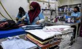 Pekerja merapikan pakaian di salah satu tempat usaha laundry di Jalan Dipati Ukur, Kota Bandung, Senin (26/7). Pemerintah memperpanjang Pemberlakuan Pembatasan Kegiatan Masyarakat (PPKM) Level 4 di sejumlah wilayah Pulau Jawa dan Bali hingga 2 Agustus dengan berbagai penyesuaian aturan, diantaranya memperbolehkan PKL, toko kelontong, laundry, pangkas rambut, rumah makan, pedagang asongan dan bengkel kecil untuk beroperasi hingga pukul 20.00 dengan protokol kesehatan ketat. Foto: Republika/Abdan Syakura (FOTO : REPUBLIKA/ABDAN SYAKURA)