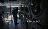 Pekerja mengoperasikan mesin cuci di salah satu tempat usaha laundry di Jalan Dipati Ukur, Kota Bandung, Senin (26/7). Pemerintah memperpanjang Pemberlakuan Pembatasan Kegiatan Masyarakat (PPKM) Level 4 di sejumlah wilayah Pulau Jawa dan Bali hingga 2 Agustus dengan berbagai penyesuaian aturan, diantaranya memperbolehkan PKL, toko kelontong, laundry, pangkas rambut, rumah makan, pedagang asongan dan bengkel kecil untuk beroperasi hingga pukul 20.00 dengan protokol kesehatan ketat. Foto: Republika/Abdan Syakura (FOTO : REPUBLIKA/ABDAN SYAKURA)