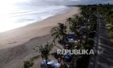 Foto udara suasana lengang kawasan wisata Pantai Legian di Badung, Bali, Senin (26/7/2021). Pemprov Bali masih menutup untuk sementara berbagai destinasi pariwisata di Pulau Bali dari kunjungan wisatawan pada perpanjangan Pemberlakuan Pembatasan Kegiatan Masyarakat (PPKM) Level 4 untuk menekan penyebaran COVID-19. (FOTO : Antara/Fikri Yusuf)