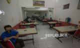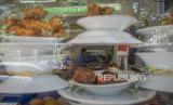 Pelayan warung makan melayani pelanggan di Kemayoran, Jakarta, Senin (26/7/2021). Pemerintah menyesuaikan aturan Pemberlakuan Pembatasan Kegiatan Masyarakat (PPKM) level 4 pada pelaku usaha kuliner dengan mengizinkan warung makan, pedagang kaki lima, lapak jajanan dan sejenisnya untuk buka dengan protokol kesehatan yang ketat sampai dengan pukul 20.00, menerima maksimal pengunjung makan di tempat tiga orang dan waktu makan maksimal 20 menit.  (FOTO : ANTARA/ADITYA PRADANA PUTRA)