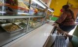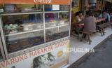 Warga membeli makanan di salah satu warung makan di Sawah Besar, Jakarta, Senin (26/7/2021). Pemerintah menyesuaikan aturan Pemberlakuan Pembatasan Kegiatan Masyarakat (PPKM) level 4 pada pelaku usaha kuliner dengan mengizinkan warung makan, pedagang kaki lima, lapak jajanan dan sejenisnya untuk buka dengan protokol kesehatan yang ketat sampai dengan pukul 20.00, menerima maksimal pengunjung makan di tempat tiga orang dan waktu makan maksimal 20 menit.  (FOTO : ANTARA/ADITYA PRADANA PUTRA)