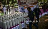 Sejumlah tabung oksigen saat penyerahan barang bukti tabung oksigen hasil pengungkapan kasus tindak kejahatan di Jakarta, Selasa (27/7). Sebanyak 138 tabung yang sudah dilakukan pemeriksaan oleh Kementerian Kesehatan itu diserahkan kepada Pemerintah Provinsi DKI Jakarta untuk digunakan sebagai penanggulangan Covid-19 di sejumlah fasilitas pelayanan kesehatan di Jakarta. Republika/Putra M. Akbar (FOTO : Republika/Putra M. Akbar)