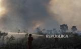 REPUBLIKA.CO.ID, OGAN ILIR -- Petugas Manggala Agni Daops Banyuasin berusaha memadamkan kebakaran lahan di Desa Sungai Rambutan, Ogan Ilir (OI), Sumatera Selatan, Rabu (28/7).
