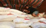 Pekerja mengatur beras saat peluncuran bantuan sosial beras di Kota Gorontalo, Gorontalo, Rabu (28/7/2021). Perum Bulog Sub Divre Gorontalo menyiapkan 146 ton beras program Kementerian Sosial yang akan diserahkan kepada 14.653 Keluarga Penerima Manfaat (KPM) terdampak Pemberlakukan Pembatasan Kegiatan Masyarakat (PPKM) di daerah itu. ANTARA FOTO/Adiwinata Solihin/rwa.