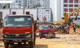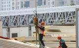 REPUBLIKA.CO.ID, JAKARTA -- Pekerja menyelesaikan pembangunan Rumah Sakit Modular Darurat COVID-19 di Tanjung Duren, Jakarta, Rabu (28/7/2021). Pembangunan Rumah Sakit Modular Darurat COVID-19 milik PT Pertamina Bina Medika (Pertamedika) Indonesia Healthcare Corporation (IHC) tersebut sudah mencapai 56 persen dan ditargetkan akan beroperasi pada Agustus 2021 mendatang.