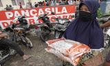 Warga mengambil beras bantuan dari Bulog bagi keluarga penerima bantuan sosial tunai (BST) dan program keluarga harapan (PKH), di Balai Desa Gumiwang, Purwonegoro, Banjarnegara, Jateng, Rabu (28/7/2021). Perum Bulog Sub Divre Banyumas, Jateng, menyalurkan 4.798,95 ton beras yang didistribusikan bagi 479,8 ribu keluarga penerima manfaat (KPM) di Kabupaten Banyumas, Purbalingga, Cilacap dan Banjarnegara. (FOTO : ANTARA/Idhad Zakaria)