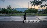 Warga berjalan di lintasan olahraga di lapangan Vatulemo, Palu, Sulawesi Tengah, Rabu (28/7/2021). Pemerintah setempat menutup hampir semua fasilitas umum dan ruang terbuka yang ramai dikunjungi warga selama penerapan PPKM Level IV yang berlaku 26 Juli hingga 2 Agustus 2021 mendatang. (FOTO : Antara/Basri Marzuki)