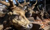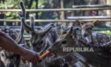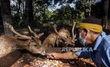 REPUBLIKA.CO.ID,BANDUNG -- Petugas memberi pakan rusa timor (Rusa timorensis) di kandang Bandung Zoological Garden, Kota Bandung, Kamis (29/7).