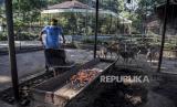Petugas membawa pakan untuk diberikan ke sejumlah satwa di kandang Bandung Zoological Garden, Kota Bandung, Kamis (29/7). Pengelola Bandung Zoological Garden berencana menerapkan sistem sehari makan sehari tidak bagi 850 satwa koleksi serta memberi pakan satwa karnivora dengan memotong satwa herbivora guna menyelamatkan satwa dari kelaparan. Hal tersebut imbas dari minimnya pemasukan akibat tidak beroperasinya objek wisata tersebut karena penerapan Pemberlakuan Pembatasan Kegiatan Masyarakat (PPKM) Level 4. Foto: Republika/Abdan Syakura (FOTO : REPUBLIKA/ABDAN SYAKURA)