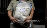 Pengurus RT membawa beras yang akan disalurkan kepada warga di kawasan Tanah Tinggi, Johar Baru, Jakarta, Kamis (29/7). Dinas Sosial DKI Jakarta kembali mendistribusikan Bantuan Sosial Non Tunai (BSNT) berupa beras untuk 1.007.379 Keluarga Penerima Manfaat (KPM) yang tersebar di lima wilayah kota Administrasi dan Kepulauan Seribu. (FOTO : Republika/Putra M. Akbar)