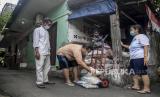 REPUBLIKA.CO.ID, JAKARTA -- Pengurus RT memindahkan beras yang siap disalurkan kepada warga di kawasan Tanah Tinggi, Johar Baru, Jakarta, Kamis (29/7).