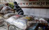 Pengurus RT memindahkan beras yang siap disalurkan kepada warga di kawasan Tanah Tinggi, Johar Baru, Jakarta, Kamis (29/7). Dinas Sosial DKI Jakarta kembali mendistribusikan Bantuan Sosial Non Tunai (BSNT) berupa beras untuk 1.007.379 Keluarga Penerima Manfaat (KPM) yang tersebar di lima wilayah kota Administrasi dan Kepulauan Seribu. Republika/Putra M. Akbar (FOTO : Republika/Putra M. Akbar)