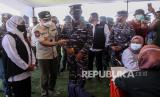 Gubernur Jawa Timur Khofifah Indar Parawansa (kiri) bersama Panglima Koarmada II Laksamana Muda TNI Iwan Isnurwanto (ketiga kiri) dan Wali Kota Surabaya Eri Cahyadi (kedua kiri) meninjau vaksinasi COVID-19 di lapangan thor Gelora Pancasila Surabaya, Jawa Timur, Kamis (29/7/2021). Komando Armada (Koarmada) II bersama Pemerintah kota Surabaya melakukan vaksinasi COVID-19 sebanyak 25.000 dosis untuk masyarakat Surabaya guna mewujudkan kekebalan komunal atau  (FOTO : Antara/Umarul Faruq)